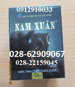 NAM XUÂN- GIÚP BỔ THẬN TRÁNG DƯƠNG, TĂNG SINH LÝ, MẠNH GÂN CỐT, BÁN TẠI 64 TRẦN HƯNG ĐẠO., P7Q5, TP HỒ CHÍ MINH. ĐT : 028-62909067, 0912910033, 028-22159045 Cửa hàng mở cửa từ 7gio72 30 đến 21 giờ các ngày, kể cả chủ nhật Thành phần: -Dâm Dương Hoắc: 140 mg -Nhục Thung Dung: 120 mg -Ba Kích Thiên: 60 mg -Hoài Sơn: 60 mg -Hoàng Kỳ: 40 mg -Bạch Truật: 40 mg -Tỏa Dương :40 mg Công dụng: -Bổ thận tráng dương, tăng sinh lý mạnh -Mạnh gân cốt, tăng cường sức khỏe Cách sử dụng: Ngày uống 2 lần, mỗi lần 2-4 viên Bảo quản: Nơi khô ráo, thoáng mát